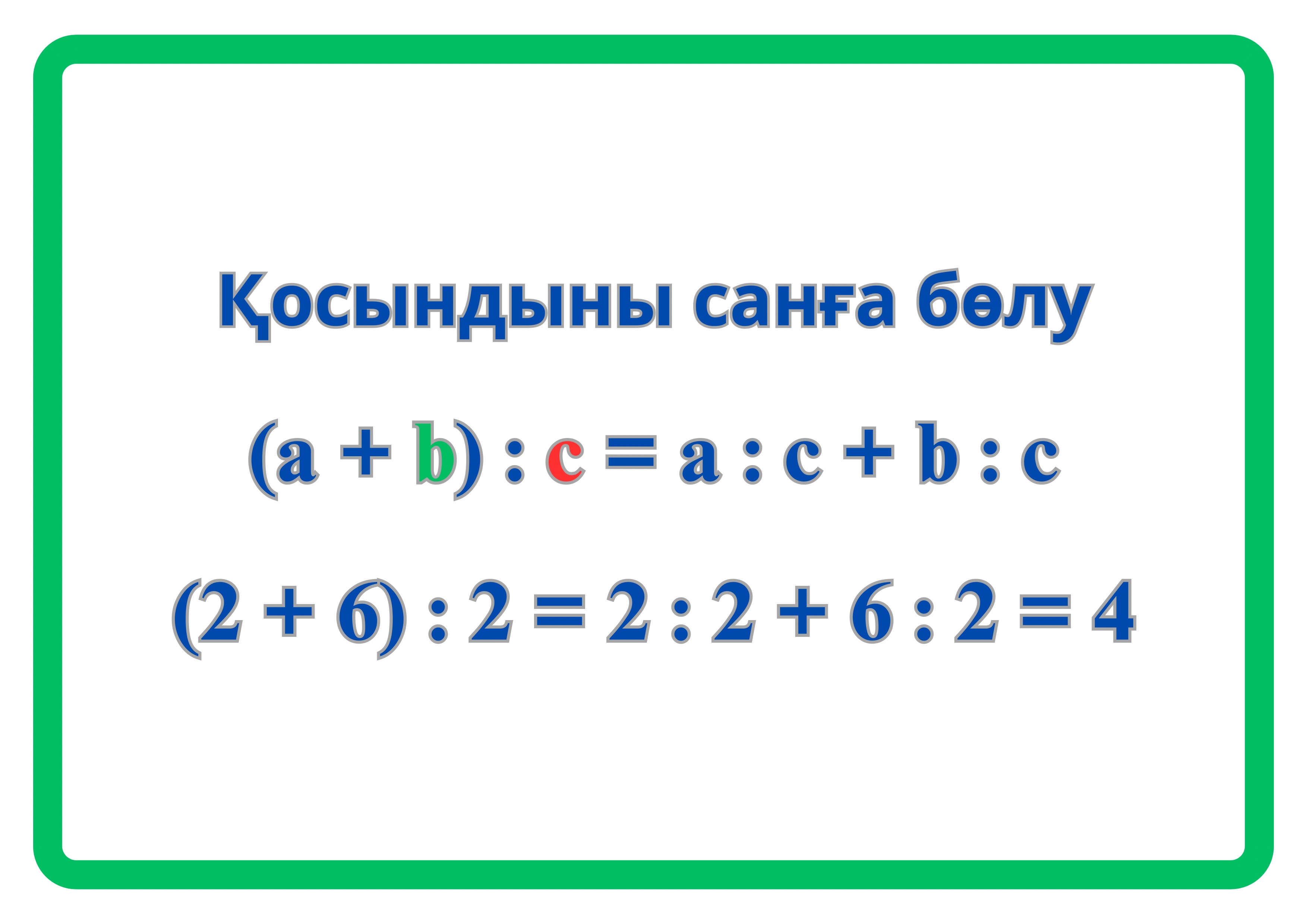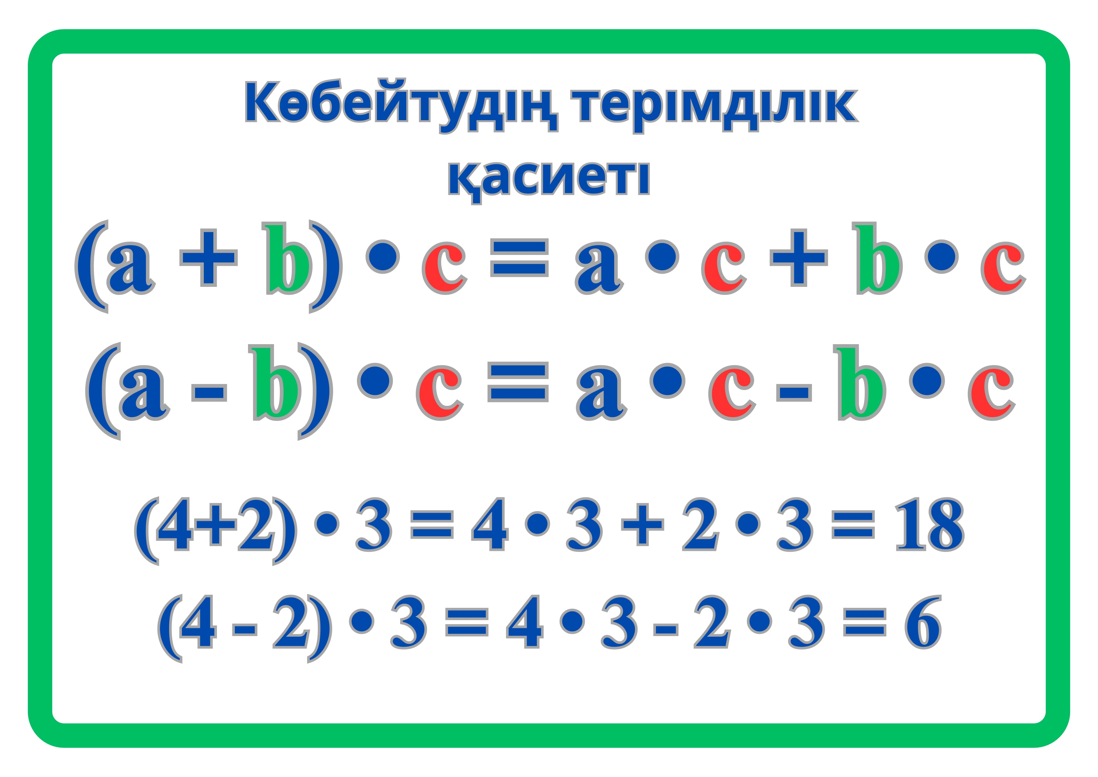 (мысалы: (a + b) : c = a : c + b : c, (4 + 2) × 3 = 4 × 3 + 2 × 3 = 18)