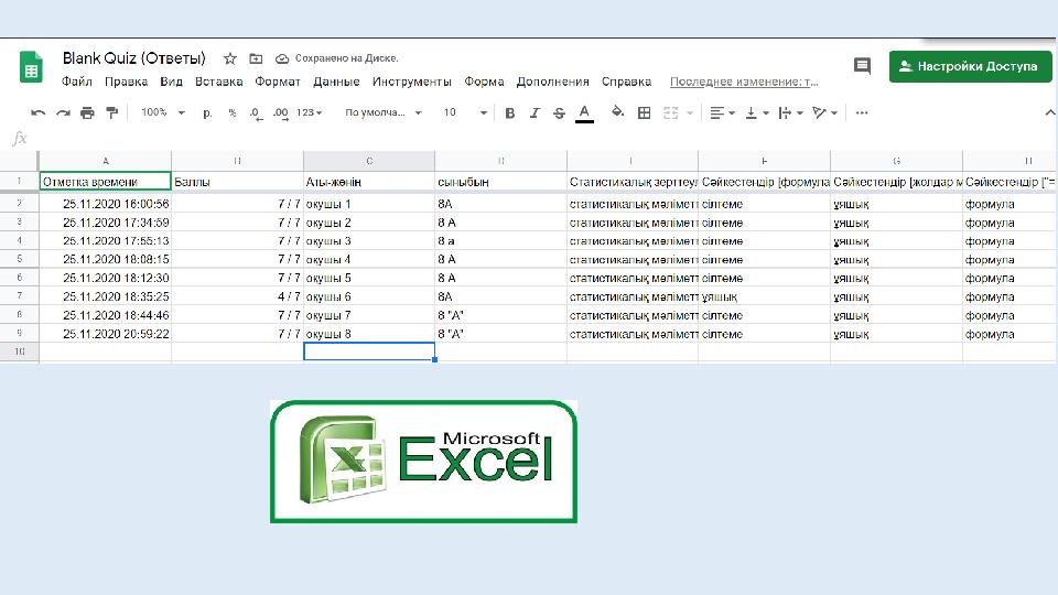 § 10. Электронды кестеде мәліметтердің § 10. Электронды кестеде мәліметтердің әртүрлі пішімдерін қолдануәртүрлі пішімдерін қолдану Оқу мақсаты : 8.2.2.1 электронды кестеде есептерді шешу үшін мәліметтердің әртүрлі пішімдерін қолдану Ұяшықтарды пішімдеу Форматирование ячеек Formating cellsКүніКүні : 26.11.20: 26.11.20 Қашықтықтан оқытуҚашықтықтан оқыту