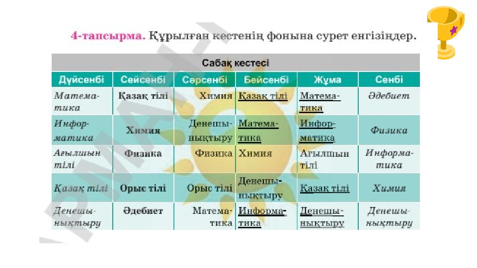 Сабақтың тақырыбы: Практикум Кесте құру. 10– сынып