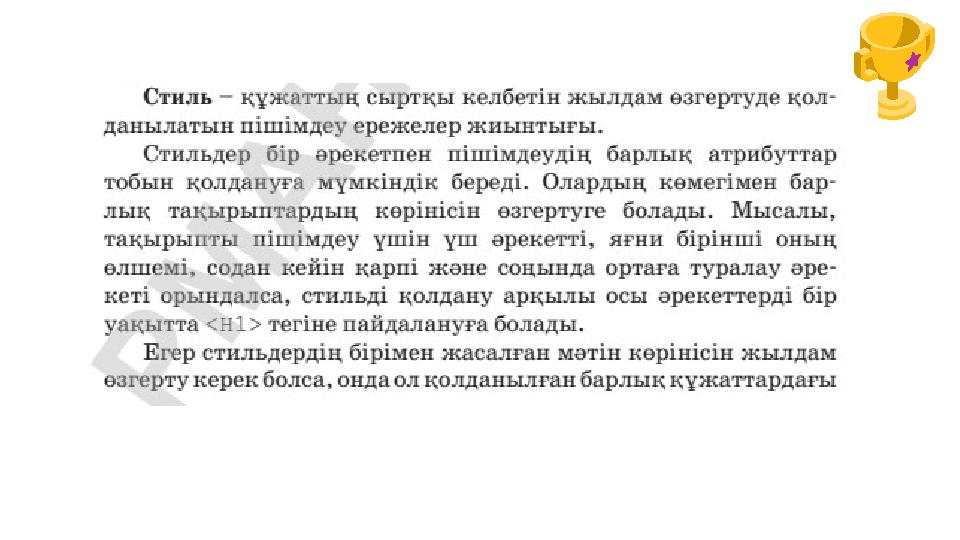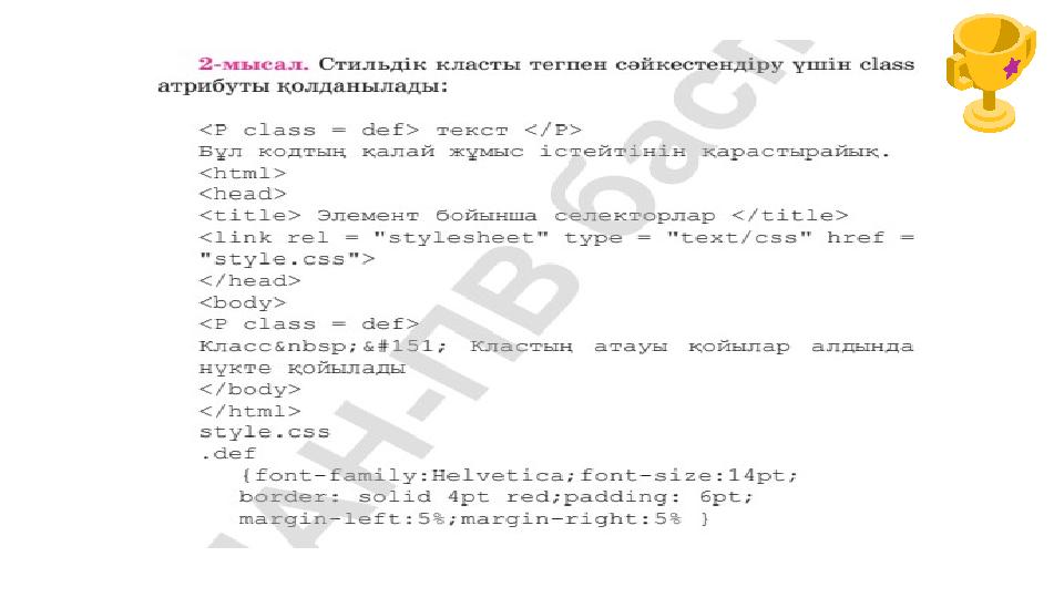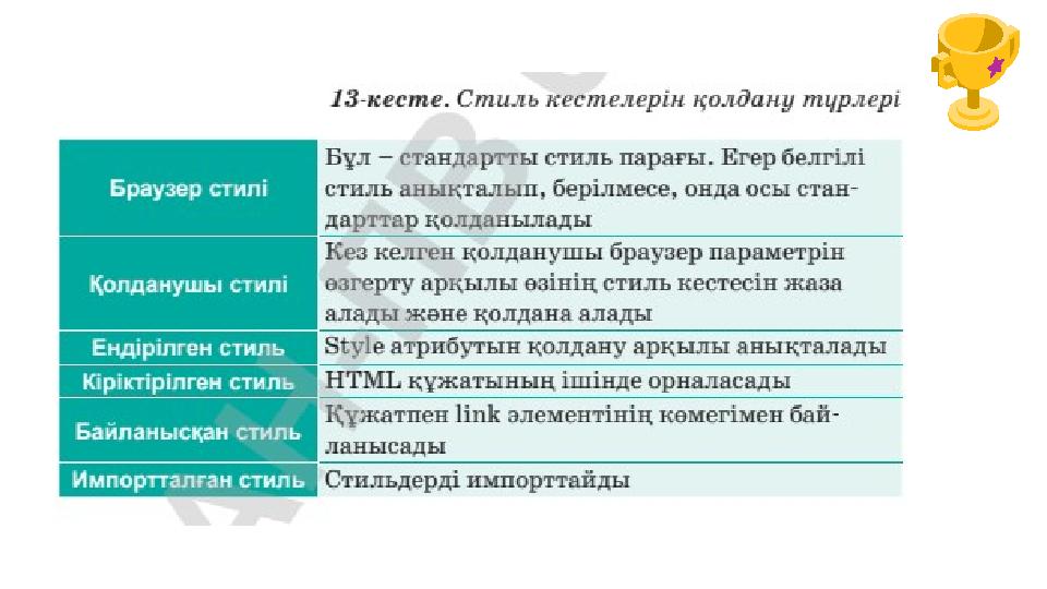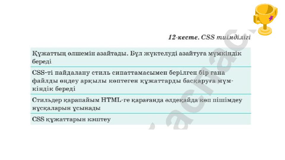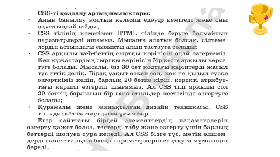 CSS (Cascading Style Sheets каскадты сиильдер парақтары) –