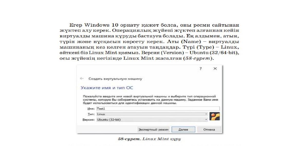 Виртуалды машина нақты операциялық жүйеге сәйкестендіріліп құрылады. Linux Mint операциялық жүйесін пайдаланған дұрыс. Видеоны Cinnamon 32/64-bit ресми сайтынан жүктеп алыңдар.