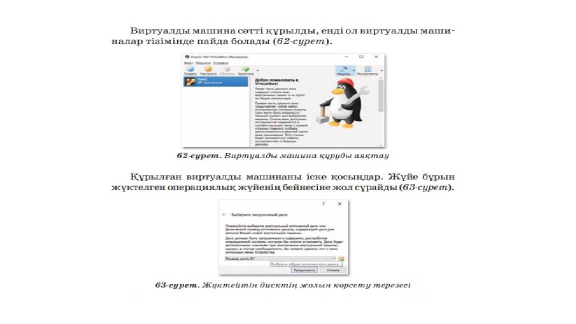 Виртуалды машинамен жұмыс істеу үшін VirtualBox жүктеп, орнату қажет.