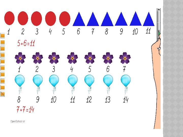САБАҚТЫҢ МАҚСАТЫ: Балалардың математикаға қызығушылығын арттыру Балаларды жиірмаға дейін санауды үйрету