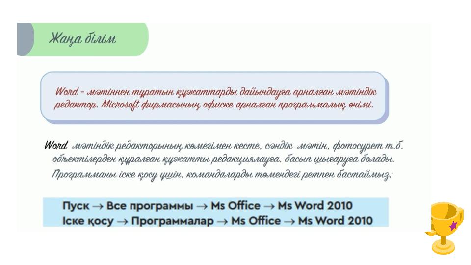 3 сынып 17 сабақ Word мәтіндік редакторы