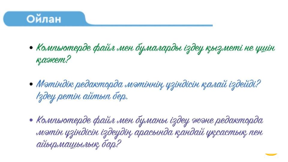3 сынып 21 сабақ Компьютерде және құжатта ақпарат іздеу.