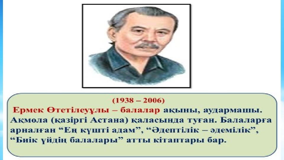 Мақтанышым – Астанам. Ермек Өтетілеуұлы Шығарманы түсініп оқимыз. Ақпаратты сызба түрінде береміз. Әңгімелеу барысында көркем бейнелі сөздерді қолданамыз.
