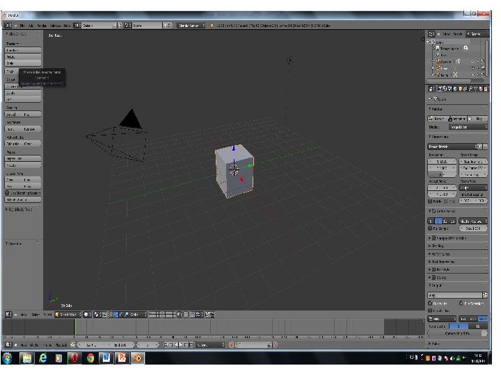 Объектерді өңдеуге мүмкіндік беретін виджет орналастыруға(перемещать), вращать(айналдыруға), масштабировать(масштабтауға) Айналдыру виджеты (виджет вращения) Камера 3D әлемінде бір ғана камера болсада болуы тиіс, өйткені Blender сақтауы керек. Мысалы суретке түсіру үшін пренетақтадағы функционалдық перне F12 басса жеткілікті.