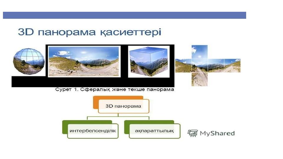 3D панорама – сфераға немесе кубқа проекцияланған панорамалы фотосурет. Оны шолу