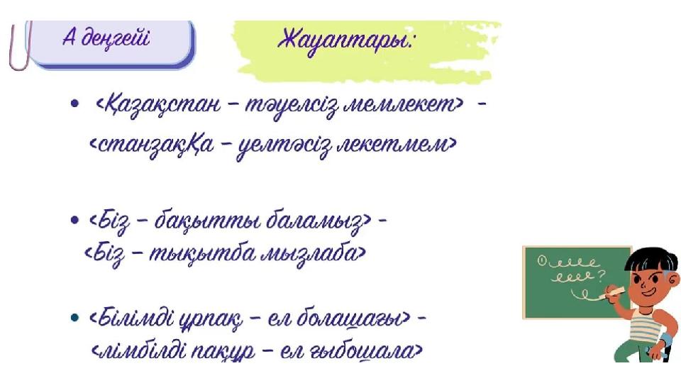 Бұл материалды қолданушы жариялаған. Ustaz Tilegi ақпаратты жеткізуші ғана болып табылады. Жарияланған материалдың мазмұны мен авторлық құқық толықтай автордың жауапкершілігінде. Егер материал авторлық құқықты бұзады немесе сайттан алынуы тиіс деп есептесеңіз,
