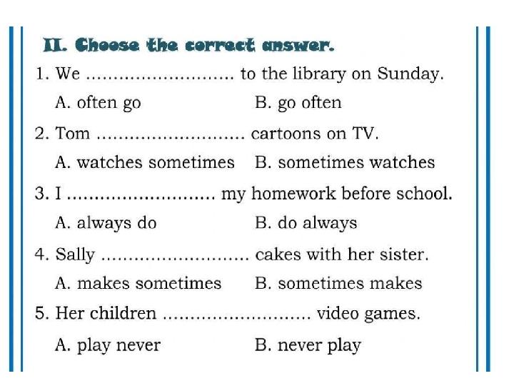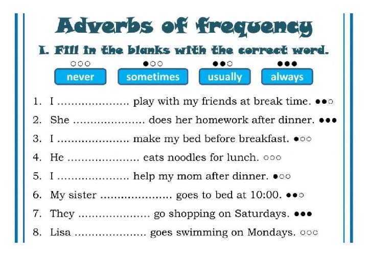 "Adverbs of frequency" тақырыбына арналған материал, тақырыпты бекіту тапсырмаларын қамтиды