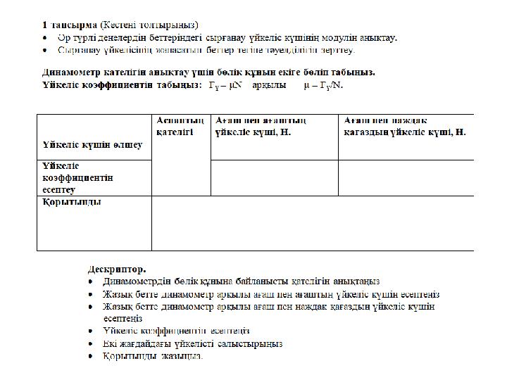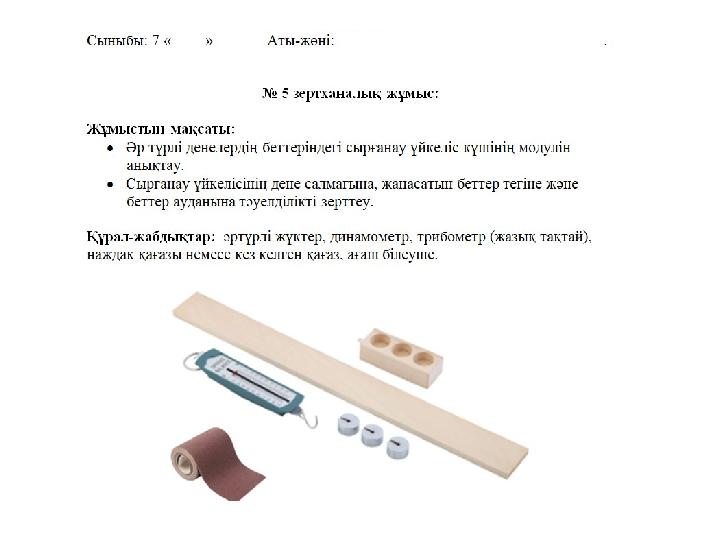 №5 зертханалық жұмыс. Сырғанау үйкеліс күшін зерттеу
