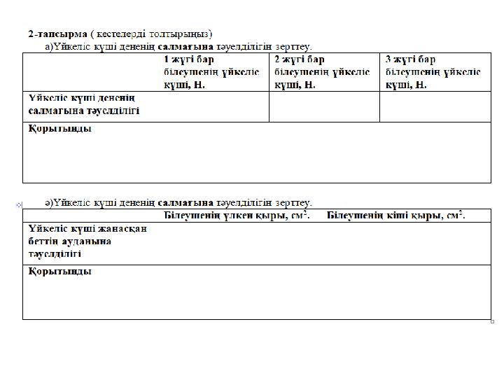 •Үйкеліс күші қандай параметрлерге байланысты? (салмақ, жанасқан