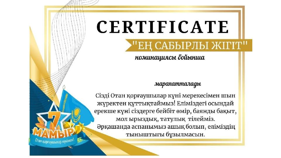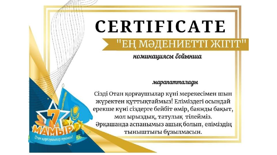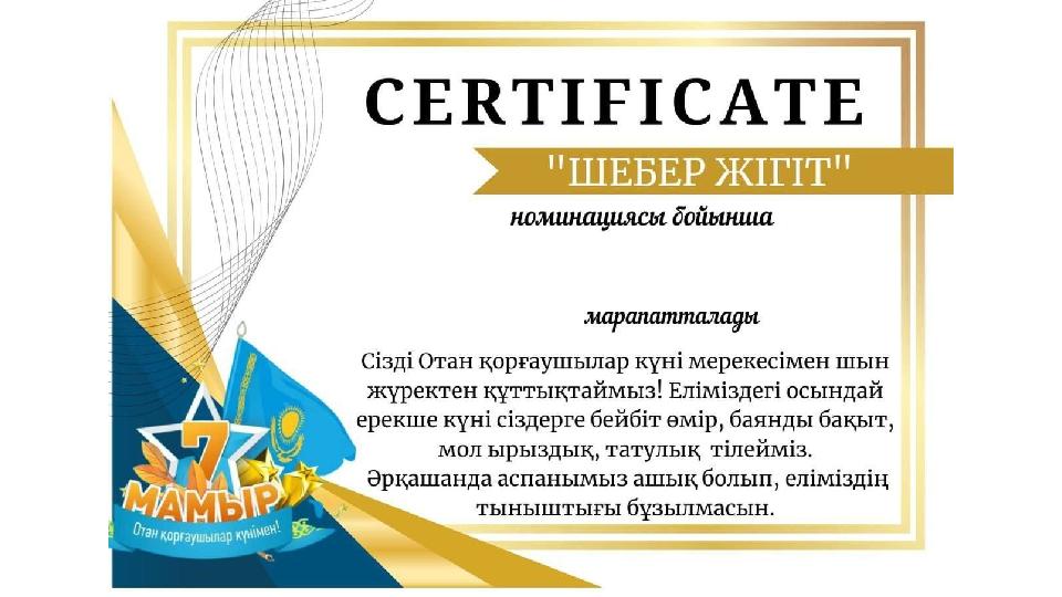 7 мамырға Жігіт сұлтанына беруге дайын сертификаттар
