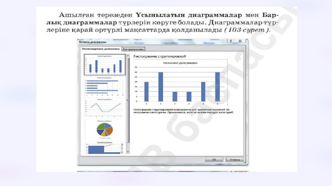Сабақтың мақсаты: Электрондық кестеде диаграммаларды жасау.