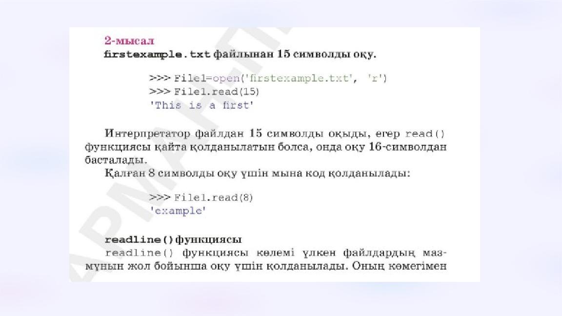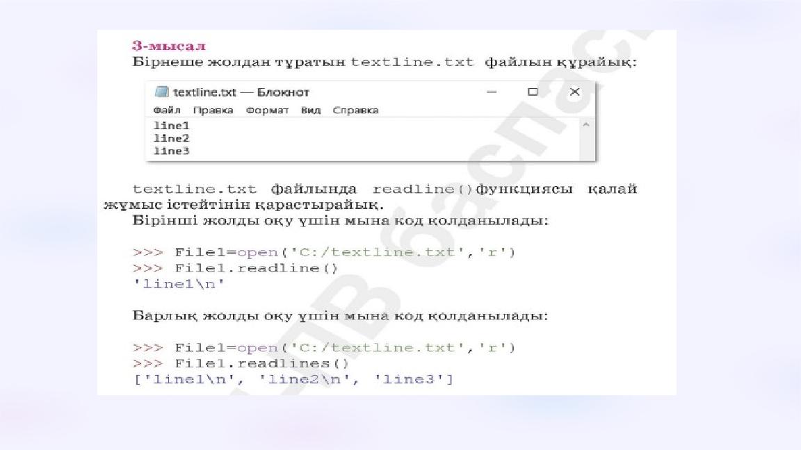 Оқу мақсаты: 7.3.3.1 Python программалау тілінде файлды оқу және жазу;