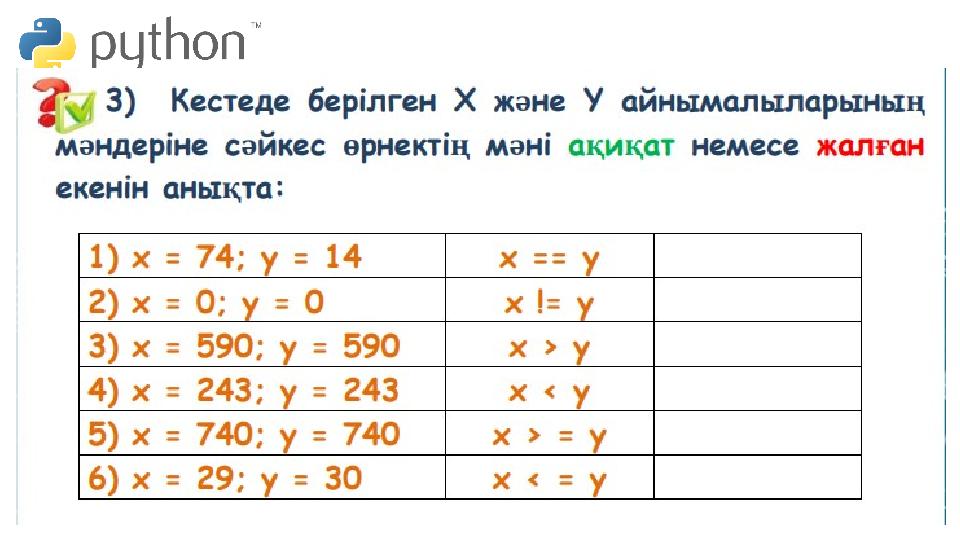 Кірістірілген шарттарды программалау PYTHON 10.02.2025