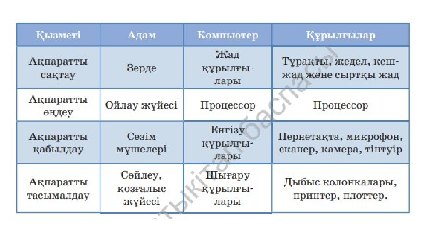 • Техникада адамның моделіне қандай мысалдар келтіре аласың? • Адам мен компьютер жұмысы арасында қандай ұқсастықтар • бар деп ойлайсың? • Компьютер адамның қандай іс-әрекеттерін орындай алады? • Адамның орнын компьютер толық баса ала ма? Сұрақ-жауап!
