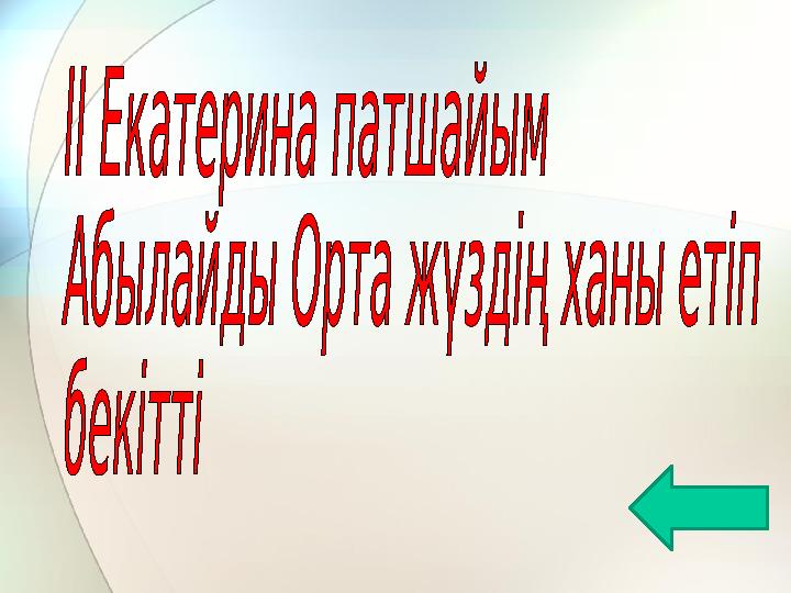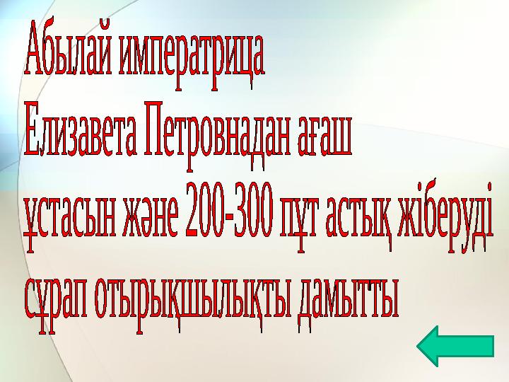 Мақсаты: 1. Білімділік: Қазақ халқының мақтанышы, Қазақ хандығының тәуелсіздігі мен аумақтық тұтастығын сақтау жолындағы Абылай ханның күрескерлік қасиеттерін ашу арқылы қалыптасқан білімдерін жүйелеу 2. Дамытушылық: Оқушылардың логикалық ойлау белсенділігін дамыт у 3. Тәрбиелік: Оқушыларды патриоттық сезімге, Отан тарихына деген қызығушылыққа тәрбиелеу