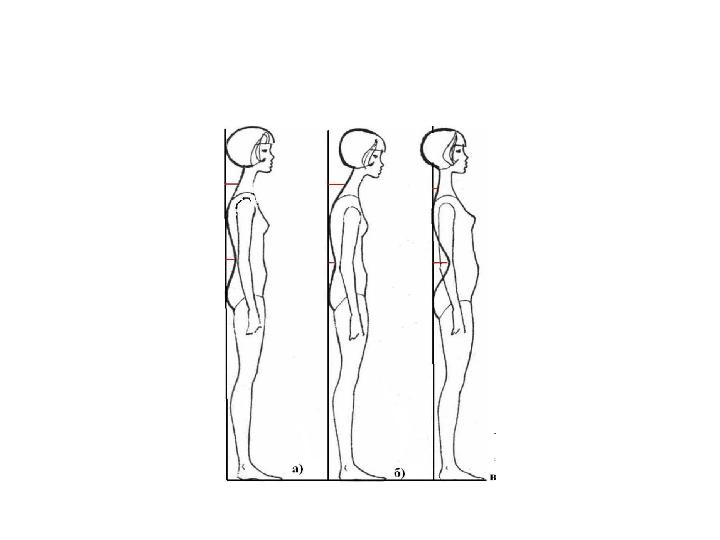 Бұл қандай фигура екен? • 1. Қалыпты фигура , яғни омыртқасының иілімі қалыпты орналасқан. • 2. Мойын омыртқасының алдыға қарай аса иілгені (суретте көрсетілгендей мойнның дуалдан алшақтап кеткен, яғни алдыға қарай иілген ). • 3. Фигураның артқа қарай шалқақтауы