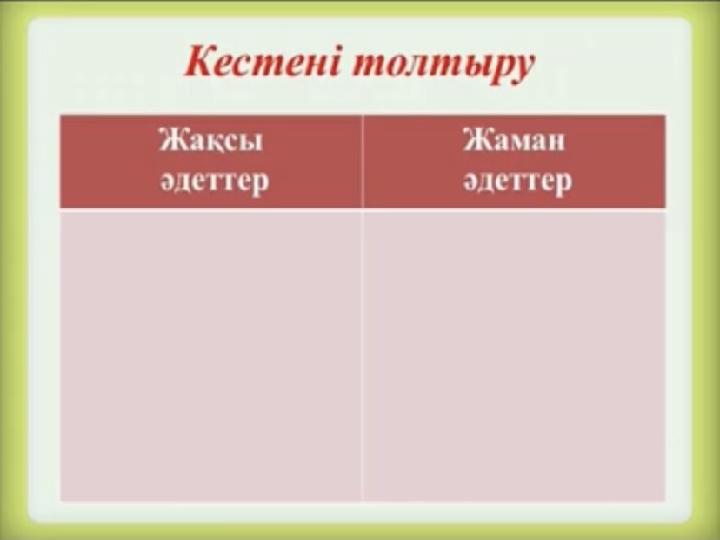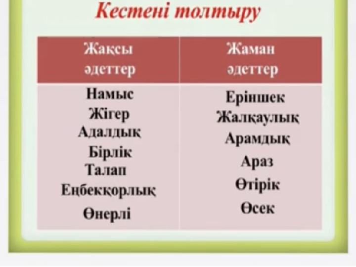 Кестені толтырып,мұғалімге жіберіңіздер. №Ш.Құдайбердіұлы ның өсиеті? Қалай түсіндің? Өзіңнің көзқарасың? 1 Арға ие басшының соңынан еріңдер 2 Еріншек, жалқаулық әдеттен безіңдер. 3 Арамдық, аразды түбімен жойыңдар 4 Өтірік, өсекті біржола қойыңдар. 5Қажымай адалдық жағында болыңдар 6Бірлік пен талапты еңбекке салыңдар, 7Өнерлі елдерден өнеге алыңдар.