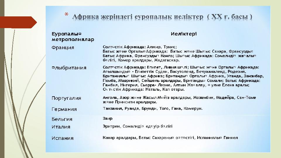 Африка аумағының 90% европалық отарларға айналды. XX ғ 60 -