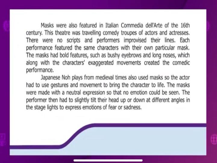 THE TOPIC OF OUR LESSON IS MASKS ON STAGE