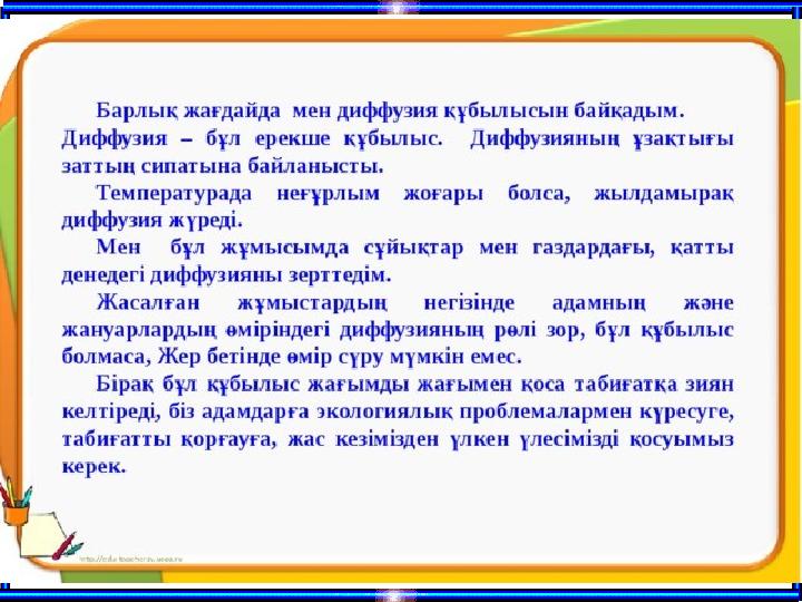 1. Табиғаттағы диффузияның рөлі туралы және материалды зерттеу.