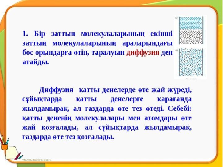 Диффузия туралы білімді кеңейтіп, диффузияның
