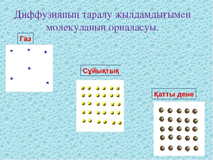 Қатты, сұйық және газ тәрізді денелерде атомдар және молекулалар қозғалысының