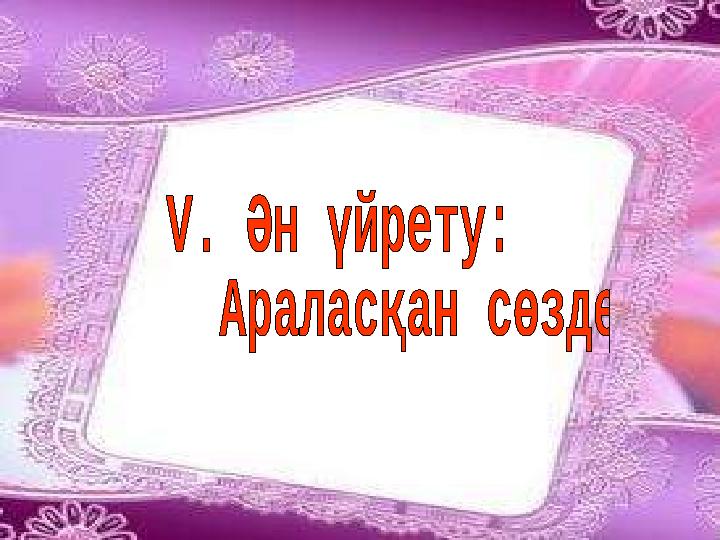 Сабақтың түрі: жаңа білімді меңгерту Сабақтың типі: Аралас сабақ Әдісі: түсіндірмелі, сұрақ – жауап, СТО әдісі:«араласқан сөздер», «сиқырлы таяқша». Көрнекіліктер: баян аспабы, ұрмалы аспаптар, интерактивті тақта. Пәнаралық байланыс: ана тілі, өнер.