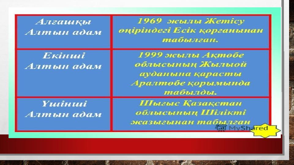 САБАҚТЫҢ ТАҚЫРЫБЫ: «АЛТЫН АДАМ»