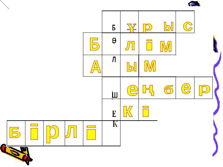 Сөзжұмбақ шешу: 1.Алымы бөліміне тең немесе алымы бөлімінен үлкен бөлшек. 2.Бөлшек сызығының астындағы сан. 3.Бөлшек сызығының үстіндегі сан. 4.О нүктесінен бірдей қашықтықтағы нүктелерден құралған тұйық сызық. 5.Ең кіші жай сан. 6.Координаталық сәуледегі таңдап алынған кесінді.