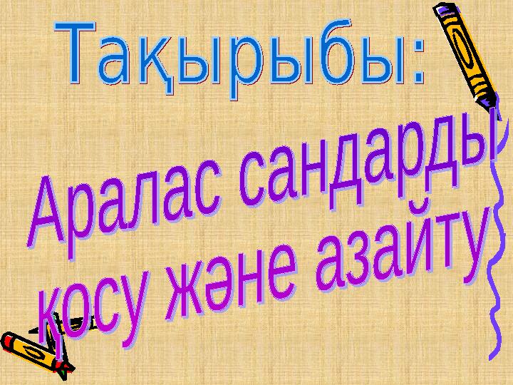 Сабақтың мақсаттары: Аралас сандарды қосу және азайту жайлы түсіндіру. Есептер шығаруға дағдыландыру. •