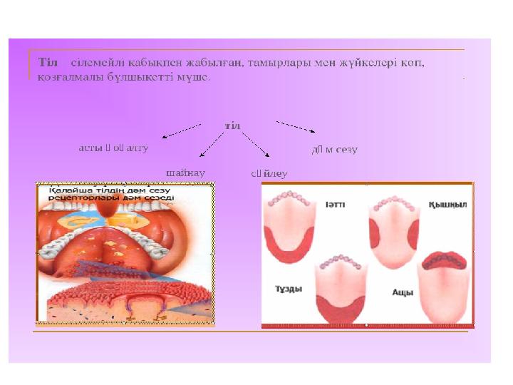 • Тағамның дәмі мен температурасын тілдің жоғарғы қабатында