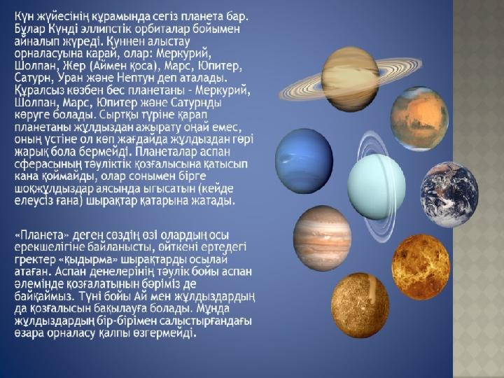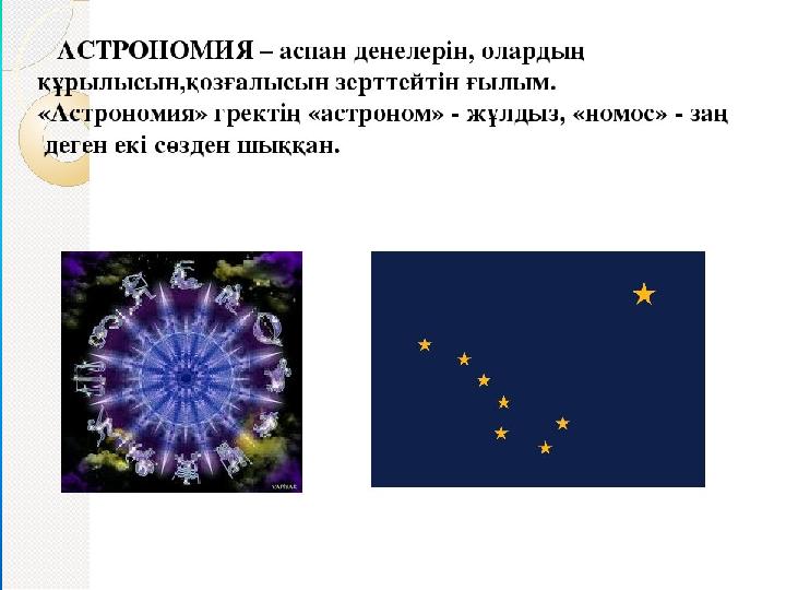 ЖАҢА САБАҚ •АСТРОНОМИЯ •ЖҰЛДЫЗ •ГАЛАКТИКА •ПЛАНЕТА •АСТЕРОИДТАР •МЕТЕОРИТТЕР •ШАҢ-ТОЗАҢДАР