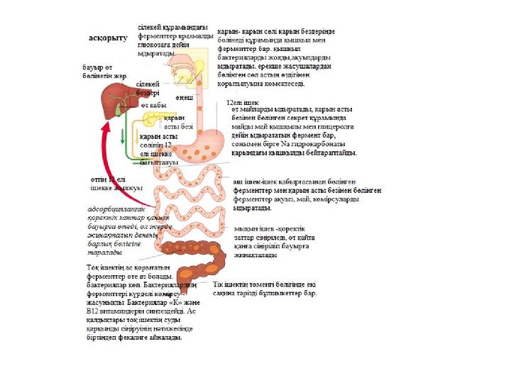Сабақтың тақырыбы: Асқорыту жүйесі. Ферменттер әсері. Сабақтың мақсаты: -адамның асқорыту процесін сипаттау. -асқорыту процесіндегі органикалық заттар мен тиісті ферменттердің арасында байланысты орнату.