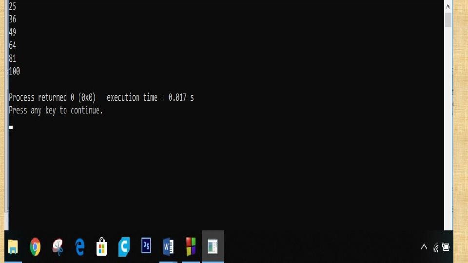 5-тен 20-ға дейін барлық бүтін сандардың квадратын экранға шығар
