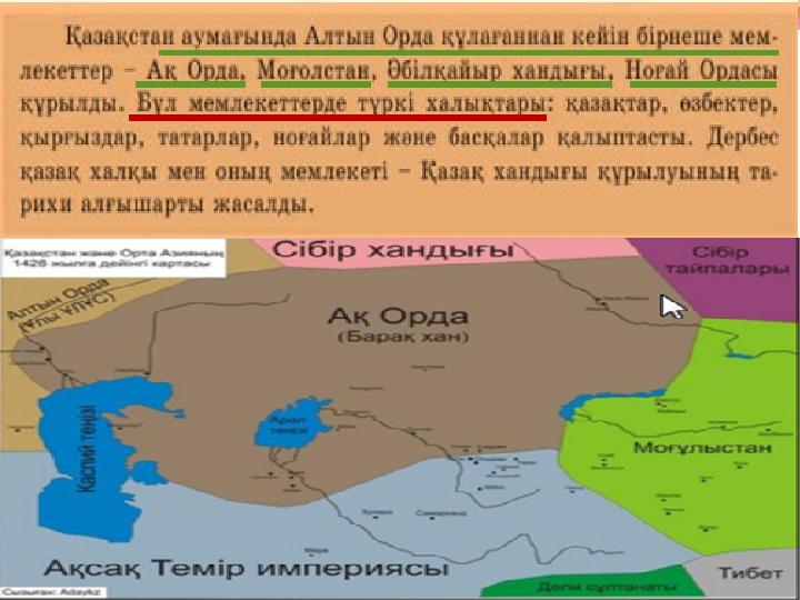 Ақ Ордаға –Жетісудан басқа барлық тер.я енді.