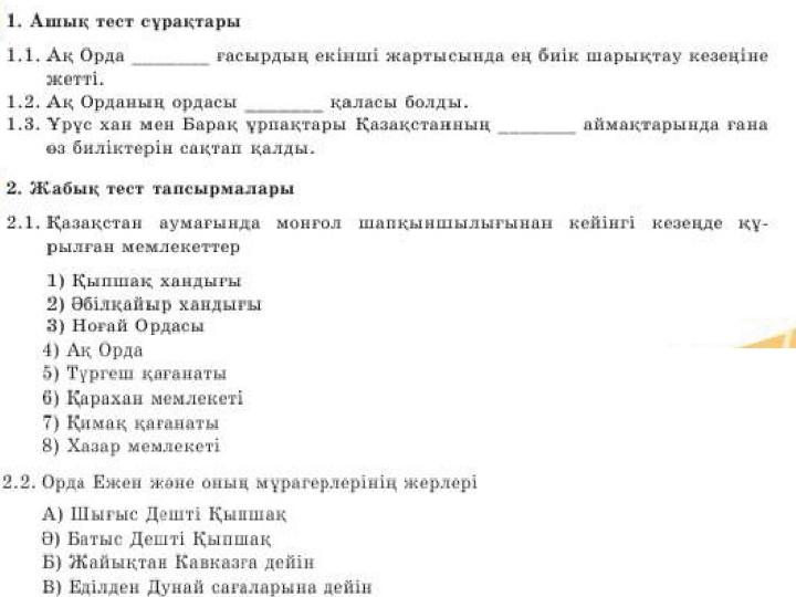 Ашық сабақ Ақ Орда 6 сынып Қазақстан тарих