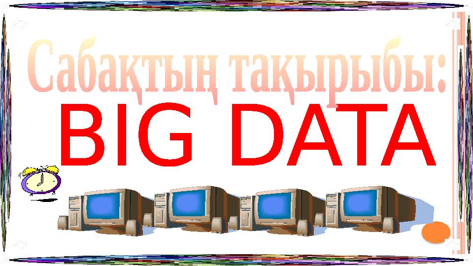 BIG DATA ДЕГЕНІМІЗ НЕ? BIG DATA ТЕРМИНІ ТУРА МАҒЫНАСЫНДА «ҮЛКЕН АҚПАРАТ» ДЕГЕН ҰҒЫМДЫ БІЛДІРЕДІ. ҮЛКЕН ДЕРЕКТЕР ТЕРМИНІН ДЕРЕКТЕРДІҢ ҮЛКЕН КӨЛЕМІН БАСҚАРУҒА ЖӘНЕ ТАЛДАУҒА ҚАТЫСТЫ ДЕП БОЛЖАУҒА БОЛАДЫ. ДЕРЕКТЕР – КОМПЬЮТЕРДІ БАСҚАРАТЫН ЖӘНЕ ЭЛЕКТР СИГНАЛДАРЫ ТҮРІНДЕ САҚТАЛАТЫН ЖӘНЕ БЕРІЛЕТІН МАГНИТТІК, ОПТИКАЛЫҚ, МЕХАНИКАЛЫҚ ТАСЫҒЫШТАРҒА ЖАЗЫЛАТЫН ГАМАЛАР, БЕЛГІЛЕР НЕМЕСЕ СИМВОЛДАР. «BIG DATA» ТЕРМИНІ ҚЫСҚА УАҚЫТ ІШІНДЕ АЛУАН ТҮРЛІ, АУҚЫМДЫ,ҚҰНДЫ ДЕРЕКТЕРДІ ЖИНАУ ДЕГЕНДІ БІЛДІРЕДІ. МҰНДАЙ ДЕРЕКТЕРДІ ӨҢДЕУ МАШИНАСЫЗ ЖҮЗЕГЕ АСПАЙДЫ.