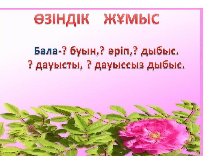 • Әріптерді жазамыз, көреміз • Дыбыстарды айтамыз, естиміз - Қандай дауысты дыбыстарды білесіңдер? - Дауыссыз дыбыстарды ата