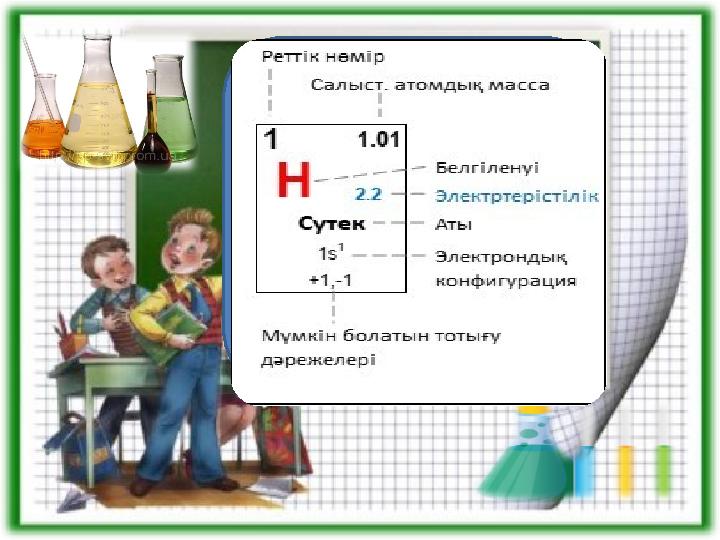 Атомдық нөмірлері 6,8,12,18,22,33,29,79,80 –ге тең химиялық элементтерді периодтық жүйеден тауып көрсетіп , оларды ата . Периодтық жүйеде а) ғаламшарлар ; ә) атақты ғалымдар ;б)мемлекет ; в) қалалар құрметіне аталған элементтерді атаңдар
