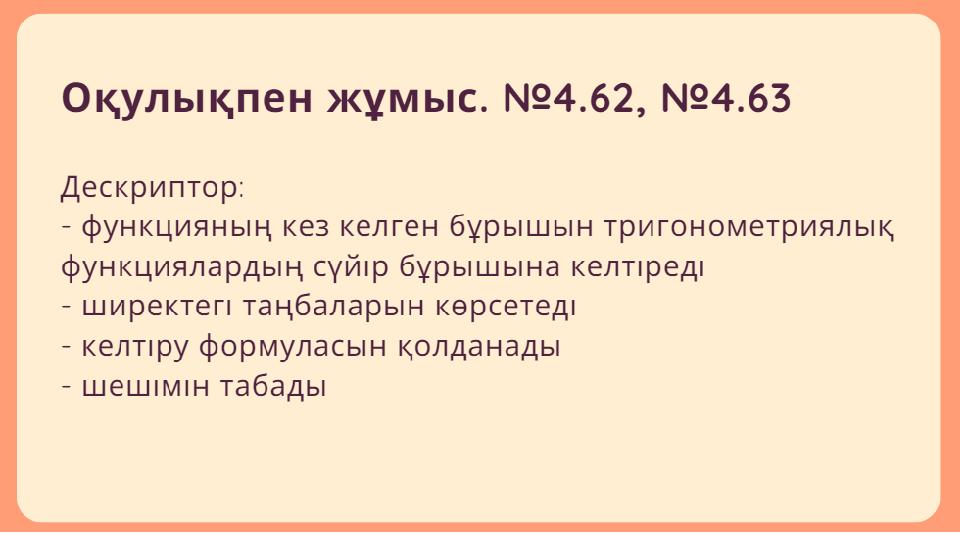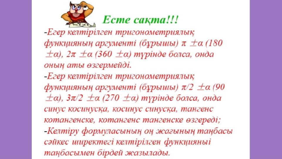 ашық сабақ "Келтіру формулалары" 9 сынып