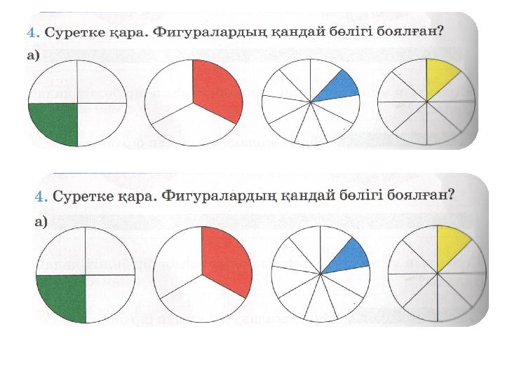 Фигуралард ың боялған бөліктерін бөлшек түрінде жаз.