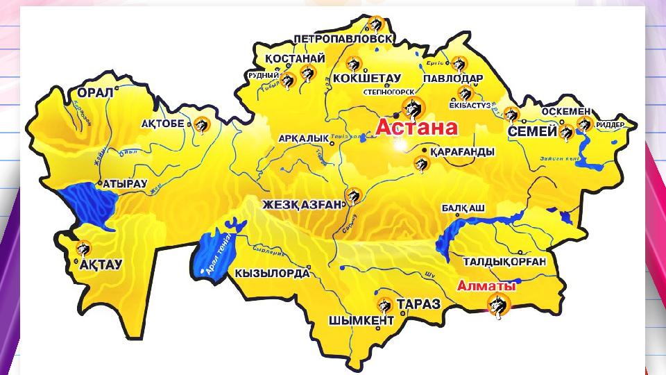 2.1.3.2 Қазақстан картасынан ірі өзен-көлдерді, қалаларды,
