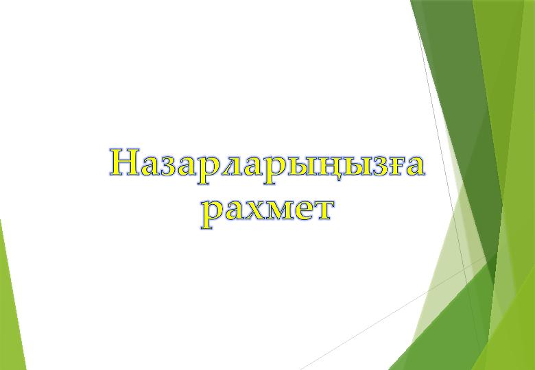 Саралау Оқушыларға орындаушының әрекетін анықтау үшін жеңілінен күрделісіне қарай тапсырмалар мен практикалық жұмыс орындатамын. Қабілеті жоғары оқушылар Сұрақтар оқушылардың ойын қозғауға, дамытуға арналады. Топтық жұмысты ұйымдастыру жұмысын қолға алады. Қабілеті орта оқушылар: орта деңгейдегі оқушыларға үлестірме тапсырмалары ұсынылады. Қабілеті төмен оқушылар: Қабілеті төмен оқушыларға қажет жағдайда үлгеруші оқушыны көмек көрсету ұсынылады. Бағалау “Бағдаршам” әдісімен бағалау Оқушылар өзара бағалайды; Ынталандыру, қолдау көрсету; Практикалық жұмысты қалыптастырушы бағалау ретінде жүзеге асырамын. Бағалау парақшалары «Бес бармақ» әдісімен бағалау Денсаулық және қауіпсіздік техникасы Компьютермен жұмыс жасау барысында қауіпсіздік техника ережелерін сақтау, дұрыс отыруын қадағалау. Көзге арналған жаттығулар жасаймыз. Сергіту сәтін жасатамын