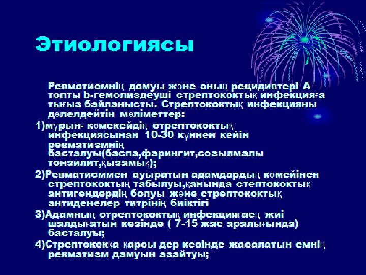 Тақырыбы: Жедел ревматиздік қызба.Жүректің созылмалы ревматизмдік ауруы. Дайындаған:Сайдилаханова Д.Ф.