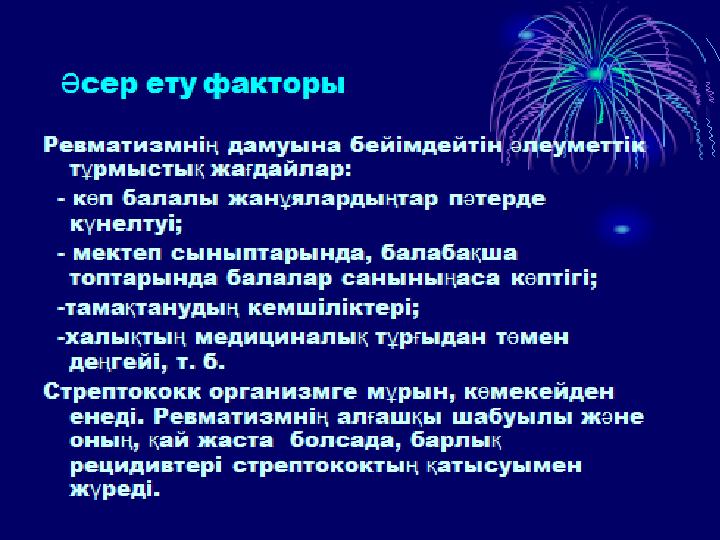 • Жіті ревматикалық қызба – В гемолиздік стрептококктардың А тобы туындататын тонзеллит немесе фарингит инфекцияларынан кейін дамитын, басым түрде жүрек- қан тамыр жүйесін,буындарды,миды және теріні зақымдайтын дәнекер тіннің жүйелі қабыну ауруы . • Ал, ауруға жиі шалдығатындар, көбінесе 7-15 жас аралығындағы балалар.