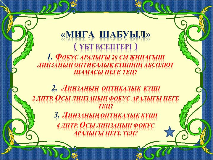 11-8-2010 № 1017 № 1018 23-29-2010 № 5-27 № 5-26 № 5-24 ϑ с = 225000км/с с = 3*10^8м/с n 1 = 1,36 α = 60 =√3/2 F=25 см f=4 м f=0,5 м ϑ ш =198200 км/с n = 2,42 n 2 = 1,63 β=30=1/2 d= 1 м d=2 м n ш / n с =? ϑ =? ϑ 1 / ϑ 2 =? n=? D=? F=? F=? Л Н Ы Ұ Ж О Р