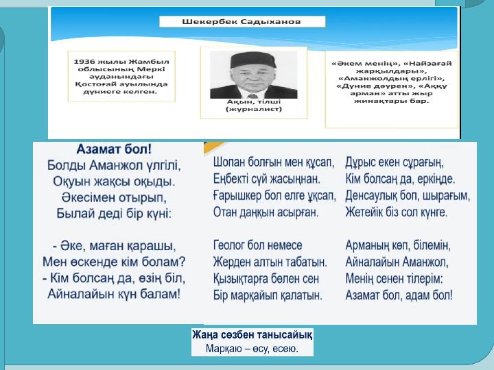 Ашық сабақ Шекербек Садыханов Азамат бол! 4 сынып